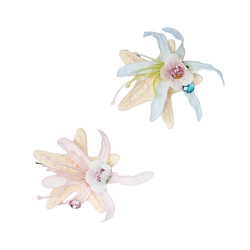 1 horquilla de cola de pez de flor púrpura con flequillo lateral y pinzas de pico de pato