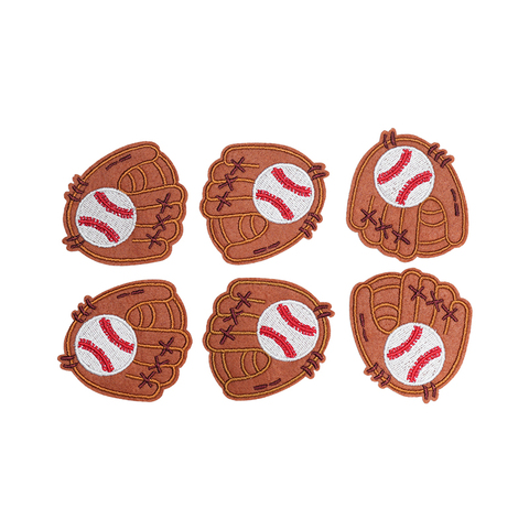 6 Pieces of Brown Baseball Glove Embroidery Hot Melt Adhesive Patch Bag Hat Clothes Ironing Hand Stitched Patch